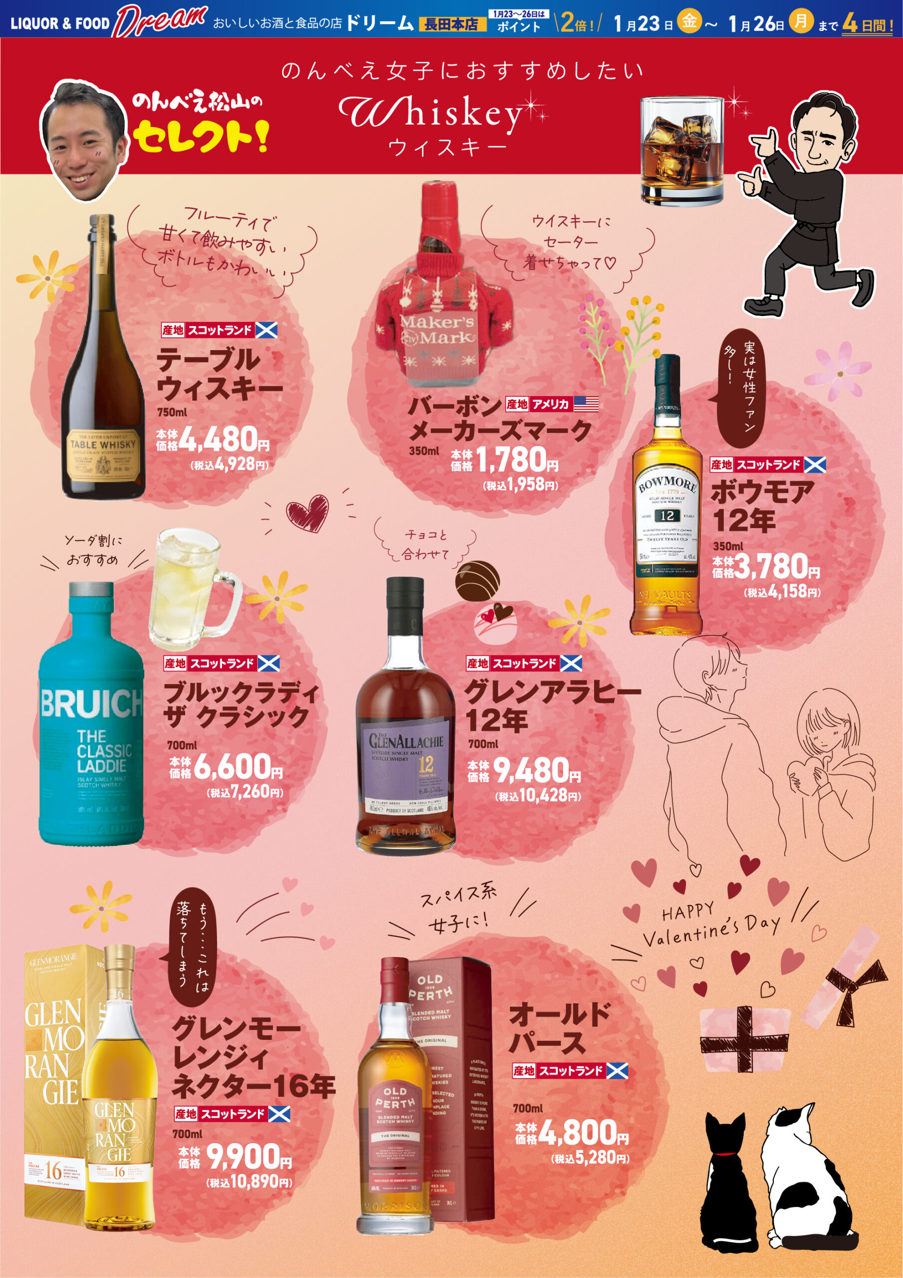 今年のバレンタインは、甘いショコラとともに「琥珀色の贅沢」を贈りませんか? ウイスキーハウス・ドリームでは、チョコレートとの相性抜群な銘酒から、自分へのご褒美にぴったりの限定ボトルまで、特別なラインナップを驚きの感謝価格でご用意いたしました。 PDFで見る 📢【12/26〜31】リカー&フード ドリーム長田本店「歳末大売り出し」開催! 前の記事